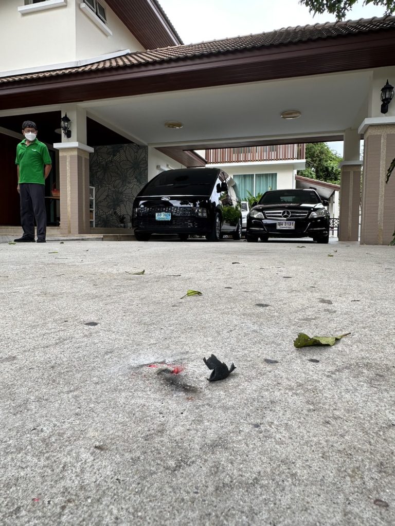 ล่าสุด เมื่อเวลา 11.30 น.วันที่ 26 ก.ค.66 ผู้สื่อข่าวเดินทางไปยังหมู่บ้านแห่งหนึ่ง ต.บางสีทอง อ.บางกรวย จ.นนทบุรี พบนายบุญมี อ่อนน้อม บรรณาธิการบริหารหนังสือพิมพ์รายวันทันหุ้น ให้ สัมภาษณ์กับผู้สื่อข่าวว่า เหตุการณ์เกิดขึ้นเมื่อวันที่ 19 ก.ค.เวลา 01.30 น.ตอนเกิดเหตุตนนอนหลับอยู่บริเวณชั้น 2 ได้ยินเสียงระเบิดดังมากจำนวน 3 ครั้ง ตกใจมากในบ้านมีทั้งเด็กผู้หญิงและคนแก่ คิดว่าหม้อแปลงไฟฟ้าระเบิดที่หน้าบ้านมีควันเล็กน้อยตอนเช้าลงไปดูมีเศษพลาสติกและคราบดินระเบิดเกลื่อนเต็มหน้าบ้านและลานจอดรถ จึงได้แจ้งความที่สภ.บางกรวย ทางเจ้าหน้าที่ตำรวจและเจ้าหน้าที่พิสูจน์หลักฐานได้เข้ามาตรวจสอบที่เกิดเหตุ