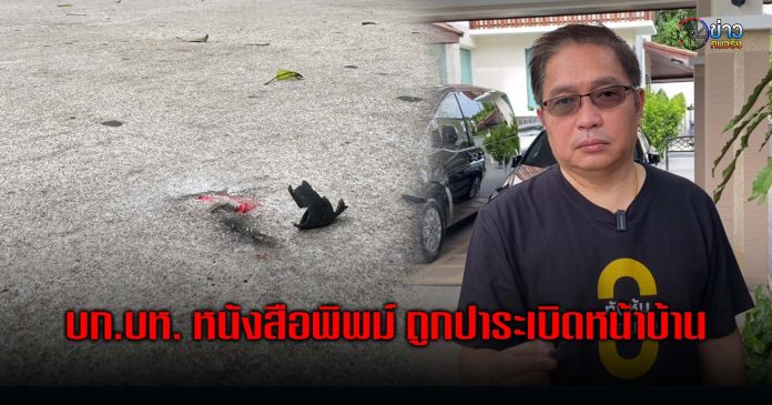 ต่อมาวันที่ 19 ก.ค.66 นายบุญมี อ่อนน้อม บรรณาธิการบริหารหนังสือพิมพ์รายวันทันหุ้น ถูกคนร้ายปาวัตถุคล้ายระเบิด 3 ลูกเข้ามายังบ้านพัก ตั้งอยู่ ต.บางสีทอง อ.บางกรวย จ.นนทบุรี โดยมี ภาพจากกล้องวงจรปิดบันทึกภาพเหตุการณ์เวลา 01.30 น. มีวัยรุ่น 2 ราย ขี่จยย.ไม่ทราบหมายเลขทะเบียน ขับขี่มาจอดบริเวณหน้าบ้านนอกประตูรั้วก่อนคนซ้อนจะเดินลงมาหยิบวัตถุคล้ายระเบิดยืนปาเข้าไปในบ้านประมาณ 3 ลูก ก่อนจะขึ้นรถจยย.ขับหลบหนี แจ้งความไว้ที่สภ.บางกรวย