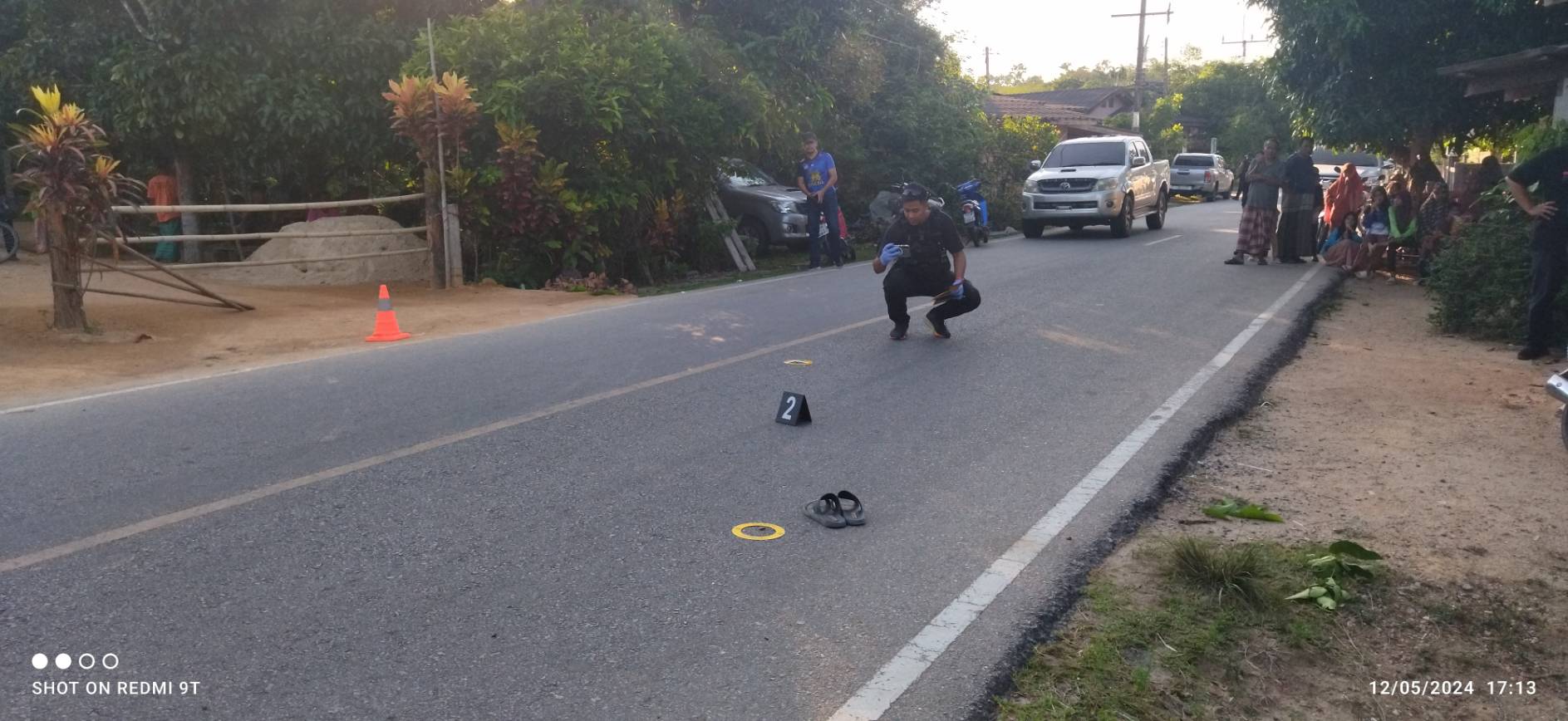 วันที่ 12 พ.ค.67 พ.ต.อ.อาภากร วิรูปักษ์อารักษ์ ผกก.สภ.ระแงะ จ.นราธิวาส รับแจ้งมีเหตุคนร้ายตามประกบยิง ผช.ผญบ.เสียชีวิต บนถนนบ้านกลูโฆ ม.2 ต.บองอ จึงสั่งระดมกำลังเจ้าหน้าที่ตำรวจทหารจำนวนหนึ่ง รุดเดินทางไปตรวจสอบที่เกิดเหตุ พบกองเลือดจำนวนหนึ่งตกอยู่ โดยในเบื้องต้นเจ้าหน้าที่ไม่สามารถตรวจสอบพบหลักฐานใดๆของคนร้าย ส่วนผู้เสียชีวิตคือ นายหนิแล๊ะ หนิสาเร๊ะ อายุ 56 ปี อดีต ผช.ผญบ.กลูโฆ อยู่บ้านเลขที่ 82/3 ม.2 ต.บองอ อ.ระแงะ จ.นราธิวาส ซึ่งเสียชีวิตห่างจากบ้านพักประมาณ 50 เมตร พลเมืองดีได้ช่วยกันส่งโรงพยาบาลระแงะไปก่อนหน้าแล้ว