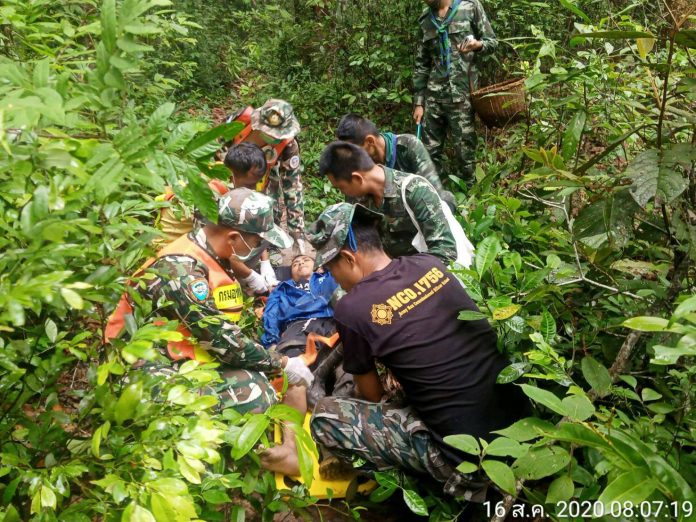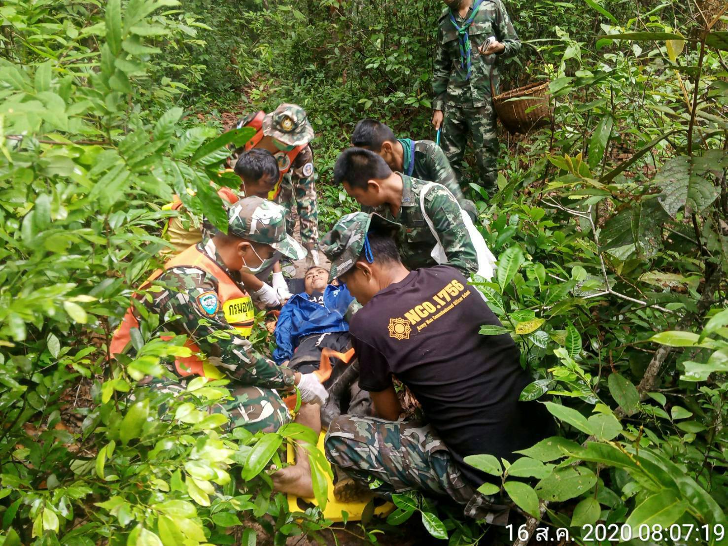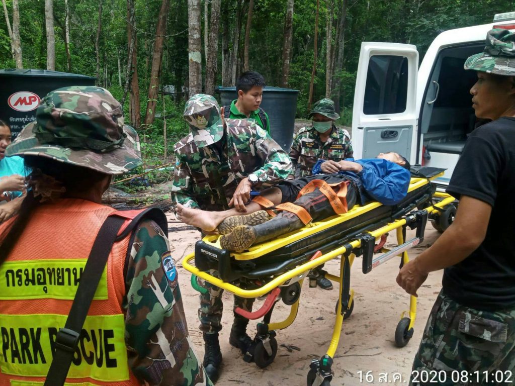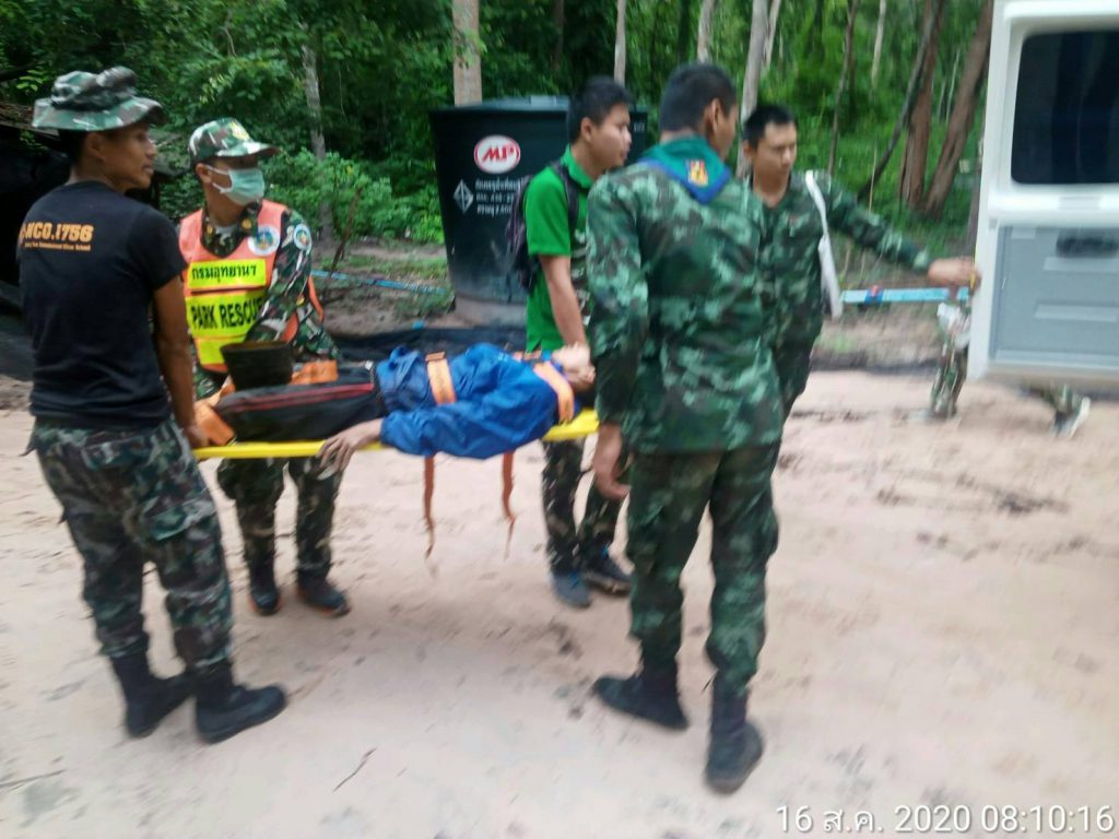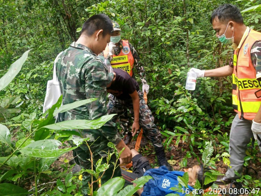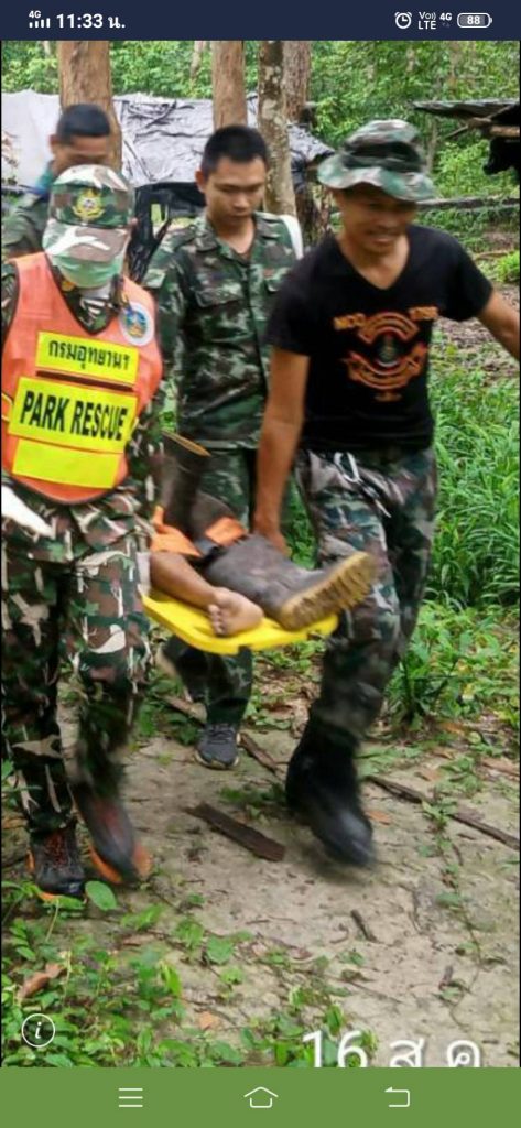 จึงได้รีบเดินทางไปตรวจสอบ พร้อมด้วยเจ้าหน้าที่ทหาร ร้อย ร.123 ประจำฐานปฏิบัติการพะยูงทอง และชุดกู้ภัยอุทยานแห่งชาติเขาพระวิหาร เมื่อไปถึงพบ นายกิตติพงษ์ ศรีแก้ว อายุ 32 ปี อยู่บ้านเลขที่ 155 หมู่ที่ 4 บ้านโศกขามป้อม ต.ภูผาหมอก อ.กันทรลักษ์ จ.ศรีสะเกษ