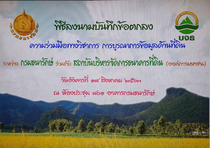 โดยมีวัตถุประสงค์ในการบูรณาการ มูลด้านที่ดินระหว่างหน่วยงาน ซึ่งจะนำไปสู่ความร่วมมือในการแก้ไขปัญหาสิทธิทำกินของเกษตรกรลดความเหลื่อมและสร้างความเป็นธรมอย่างยั่งยืนให้กับราษฎร ช่วยเหลือเกษตรกรและผู้ยากจน