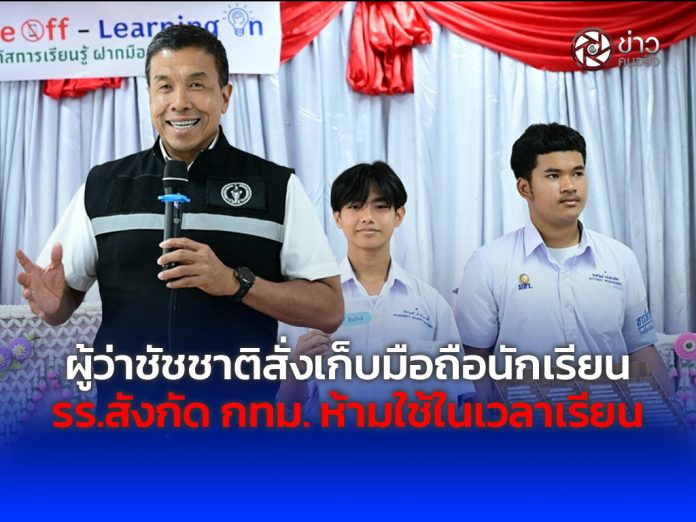 วันที่ 13 มี.ค. 2569 นายชัชชาติ สิทธิพันธุ์ ผู้ว่าราชการกรุงเทพมหานคร ประกาศมาตรการเชิงรุกการควบคุมและกำกับการใช้อุปกรณ์ดิจิทัล (โทรศัพท์เคลื่อนที่และอุปกรณ์อิเล็กทรอนิกส์) ภายในโรงเรียนสังกัดกรุงเทพมหานคร ภายใต้โครงการ “Phone Off, Learning On โฟกัสการเรียนรู้ ฝากมือถือไว้กับครู” เพื่อเสริมสร้างสภาพแวดล้อมการเรียนรู้ที่มีประสิทธิภาพ และป้องกันผลกระทบด้านสุขภาพและพฤติกรรมจากการใช้งานหน้าจอเกินความจำเป็น ที่โรงเรียนมัธยมวัดสุทธาราม เขตคลองสาน เมื่อวันที่ 12 มี.ค. ที่ผ่านมา