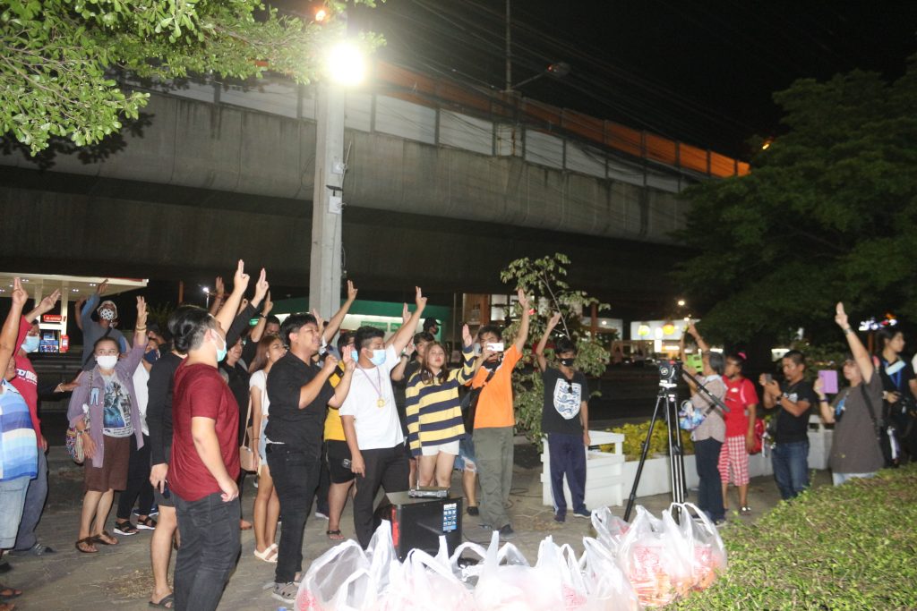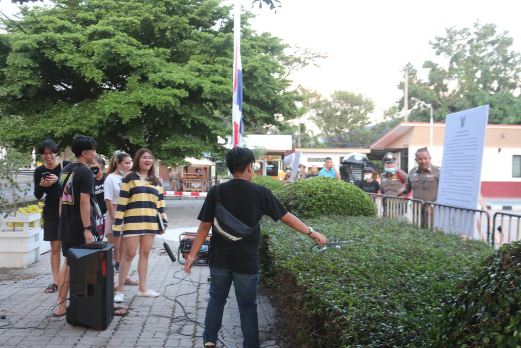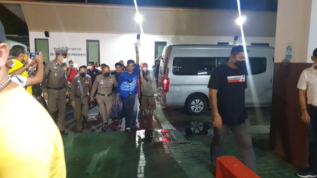 ซึ่งทางเจ้าหน้าที่ได้ควบคุมตัวนายภานุพงศ์ จาดนอก หรือไมค์ ขึ้นรถตู้มาจากจังหวัดระยองหลังจากที่ทางรถตู้จอดด้านข้างสภ.คลองหลวงเจ้าหน้าที่ตำรวจได้นำตัวภานุพงศ์ จาดนอก หรือไมค์ ขึ้นไปห้องสอบสวนชั้นสามทันทีและนายไมค์ได้ชูมือสามนิ้วขณะเดินขึ้นด้วย และกลุ่มของนักศึกษาประชาชนที่มาคอยให้กำลังใจก็พูดใส่ไมค์โครโฟนว่าปล่อยไมค์ ปล่อยไมค์ ซึ่งขณะนี้ทางเจ้าหน้าที่ตำรวจอยู่ในระหว่างการสอบสวนนายภานุพงศ์ จาดนอก หรือไมค์