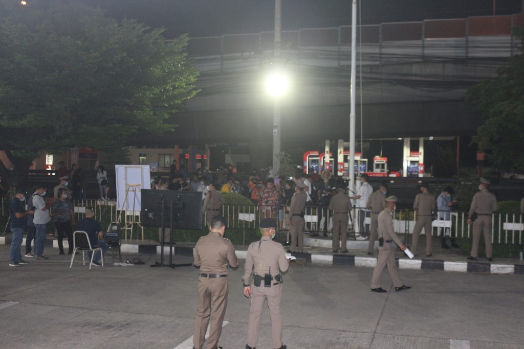 ซึ่งทางเจ้าหน้าที่ตำรวจได้จับกุมตัวได้ที่จังหวัดระยองและตัวมาดำเนินที่สภ.คลองหลวง ซึ่งบรรยากาศโดยทั่วไปหน้าสภ.คลองหลวง มีกลุ่มของผู้ชุมนุมทั้งนักศึกษาและประชาชนมายืนให้กำลังใจนายภานุพงศ์ จาดนอก หรือไมค์ประมาณ20 คนซึ่งทางเจ้าหน้าที่ตำรวจได้ให้กลุ่มของผู้ชุมนุมทั้งนักศึกษาและประชาชนอยู่นอกรั้วแนวกั้นที่ทางเจ้าหน้าที่ตำรวจได้จัดตั้งไว้ และมีเจ้าหน้าที่ตำรวจจำนวนหนึ่งได้ตั้งแถวรักษาความปลอดภัยอยู่ที่หน้าสภ.คลองหลวง